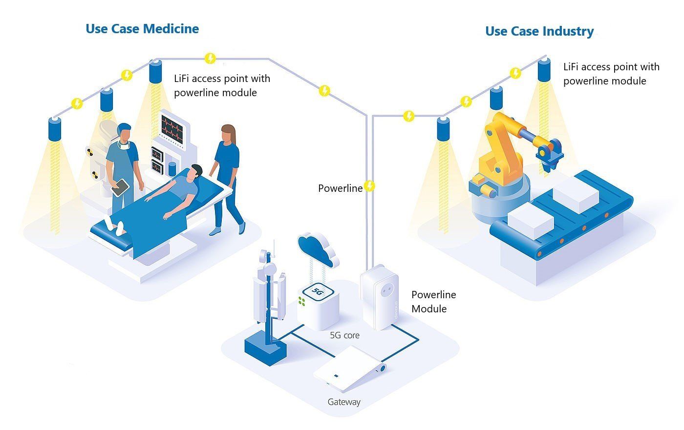 Powerline Communication, a technology that uses existing cabling for data transmission, serves as the link between LiFi and 5G.